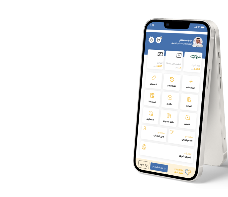MUNTAJAT platform is the first platform in the Kingdom that connects the customers of the Animal Products Trading Company and its warehouses in an easy and innovative way. It aims to facilitate and speed up ordering processes through the platform with flexible and easy-to-use lists. It also allows the user to manage and follow up on operations, invoices and returns, with the ability to communicate with the accounts manager to follow up and provide more information. Flexibility and many services that meet the needs of customers and stores